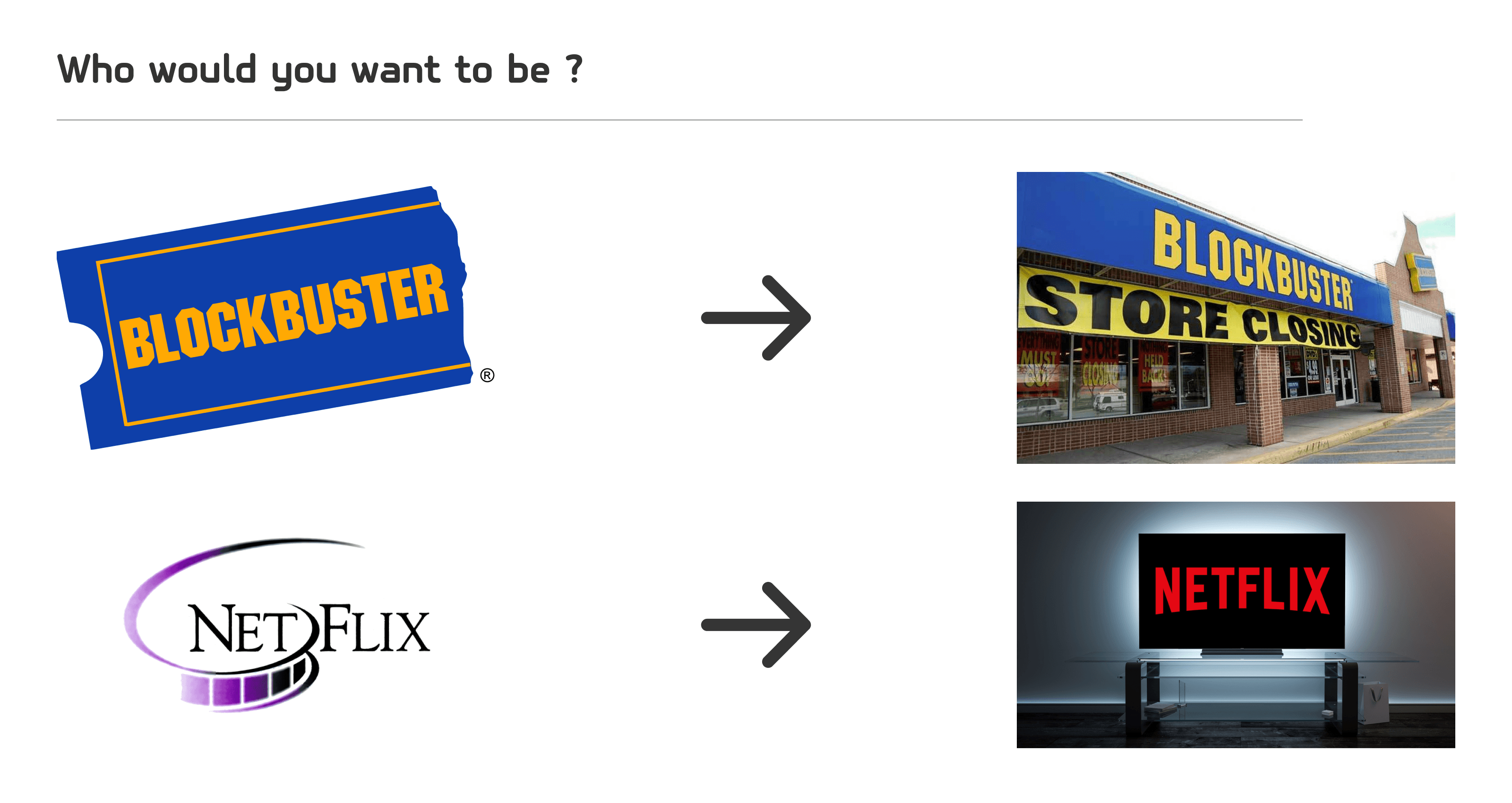 Accepting these realities and digitizing tried-and-tested business models rapidly and effectively is decisive for a company’s fate today. That’s why the former DVD rental company Netflix became the go-to platform for video streaming, while Blockbuster (just like your local video rental store) is out of business.